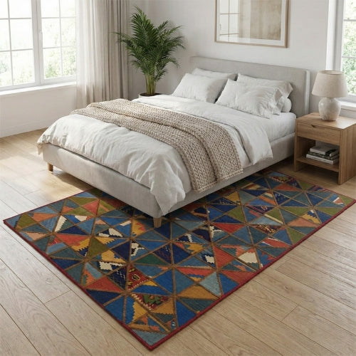 Modern Patchwork Kilim Rug - Natural Wool Floor Carpet