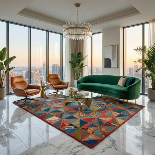Bring a piece of authentic history into your home. This strikingly unique patchwork floor rug is created by carefully stitching together handwoven kilim pieces, finished with a sturdy backing lining for excellent durability.